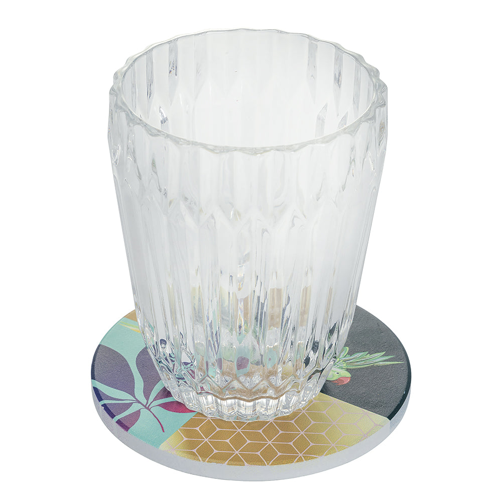 Lasciati catturare da colori vivaci, che creano ricchi e intriganti contrasti che si mescolano fra di loro alternandosi su fondi pieni e decorati da linee che creano giochi magnetici. Piante, foglie e uccelli esotici completeranno la ricchezza e la vivacità dei sottopentola e sottobicchieri della linea Parrot.