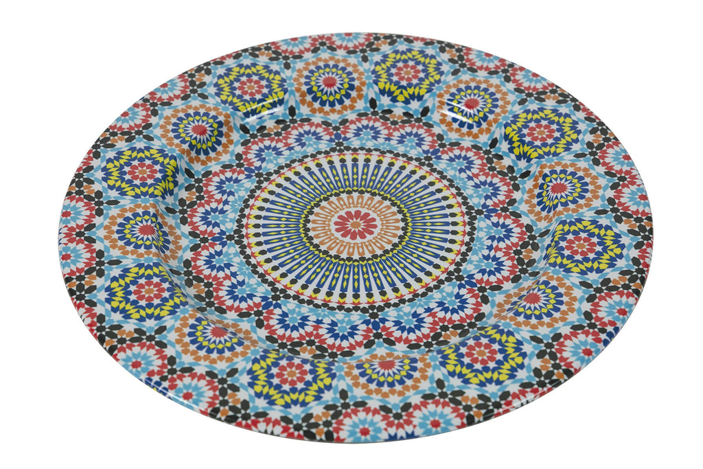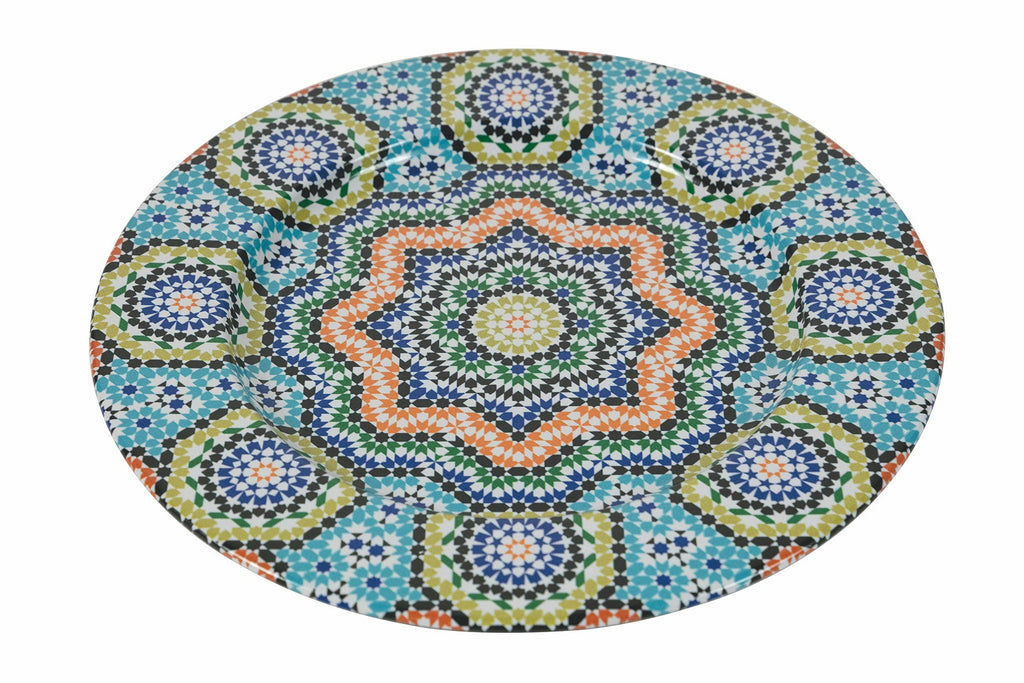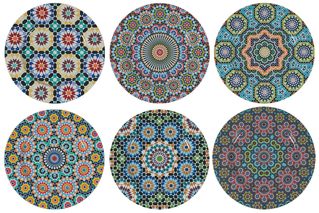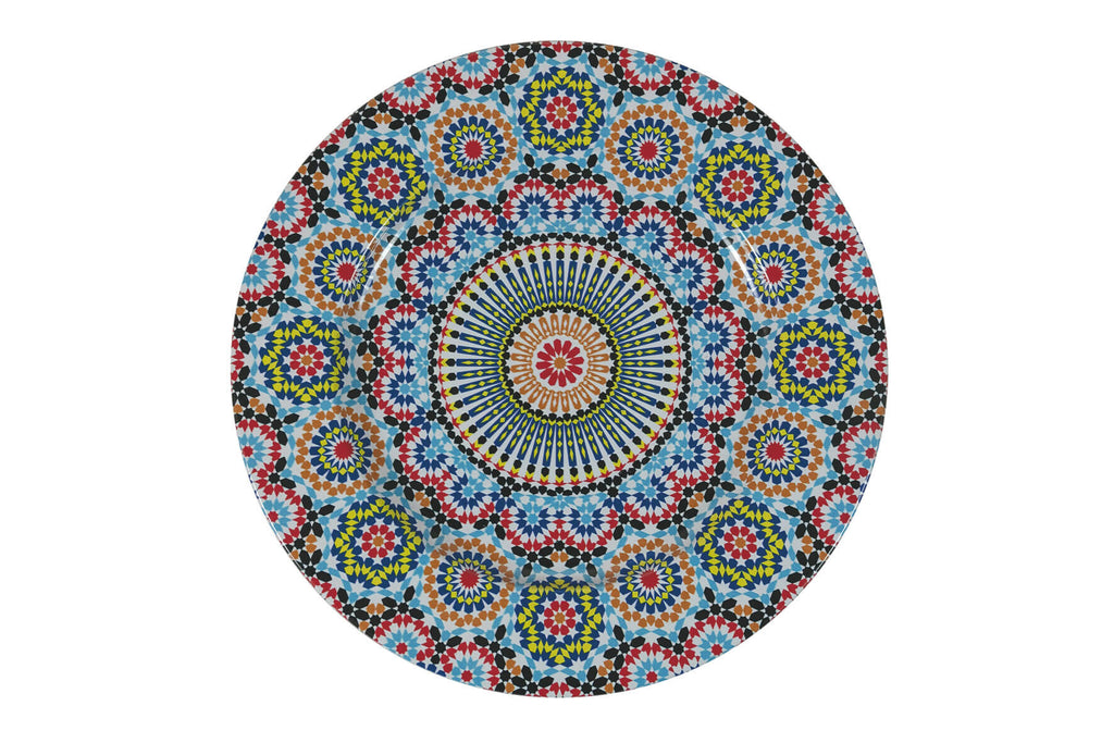 Un mosaico di colori in tavola La sola vista di questo set è una porta aperta su Marrakech con le sue stradine labirintiche e affollate, i mille souk, lo sfarzo dei suoi palazzi e i profumi tipici delle spezie più variegate. Gli amanti dei colori brillanti e dello stile orientale non sapranno resistervi: il servizio Marrakech conferirà il giusto quid esotico all'apparecchiata, grazie alle mille note di colore racchiuse nei meravigliosi e vivaci mosaici. La medina di Marrakech è famosa per essere una città gelosa dei propri segreti, ma mangiando con questo set sicuramente vi sarà possibile scoprirne quelli in tavola. Il set Marrakech è perfetto per chi: è affascinato dalle esplosioni di colori, desidera una tavola vivace e dal gusto esotico. Cosa non deve mai mancare: ciotoline con cui accompagnare condimenti speziati ed esotici e salse d'accompagnamento, posate colorate.