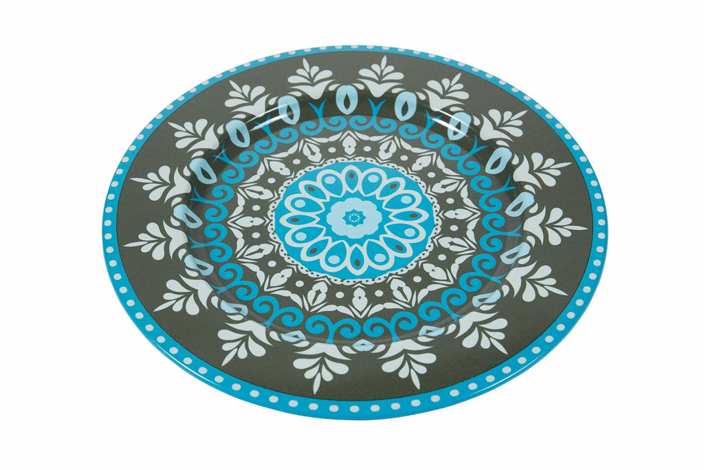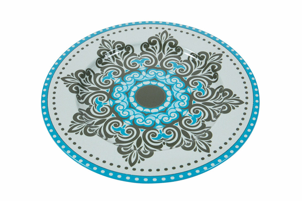 Gli accessori Cala Jondal completano un'apparecchiata ricca che non intende lesinare sull'abbondanza della decorazione. Ghirigori e geometrie traggono ispirazione dall'Oriente e sguazzano tra cromie marine per un risultato elegante, sfarzoso, appariscente.