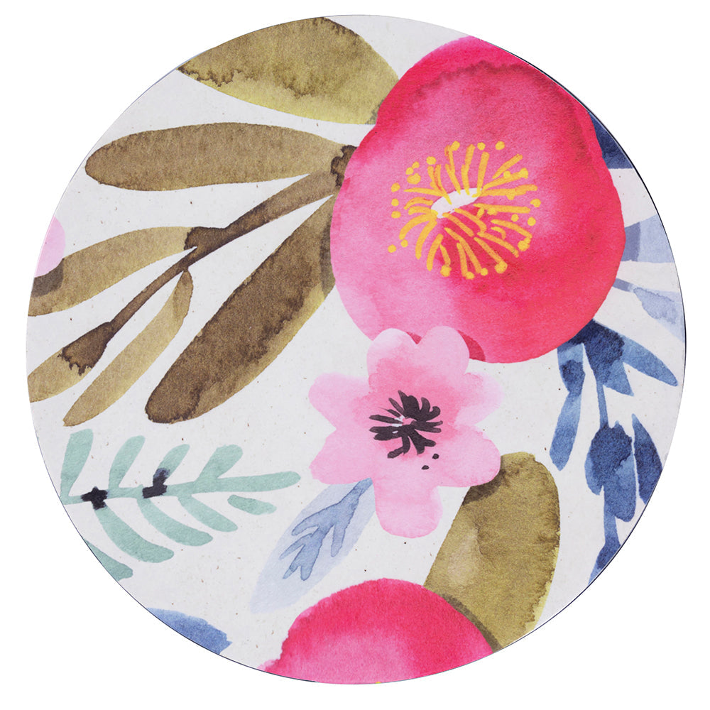 Mille pennellate di colori vivaci e vibranti si stendono sulla superficie dei complementi della linea Acquerello come un bel dipinto su una tela bianca. Fiori e foglie di differenti forme e colori prendono vita e sembra appena sbocciata la primavera sulle superfici lisce e levigate dei sottopiatti. Tavola e cucina si ravviveranno con molteplici note di colore e variegate cromie.