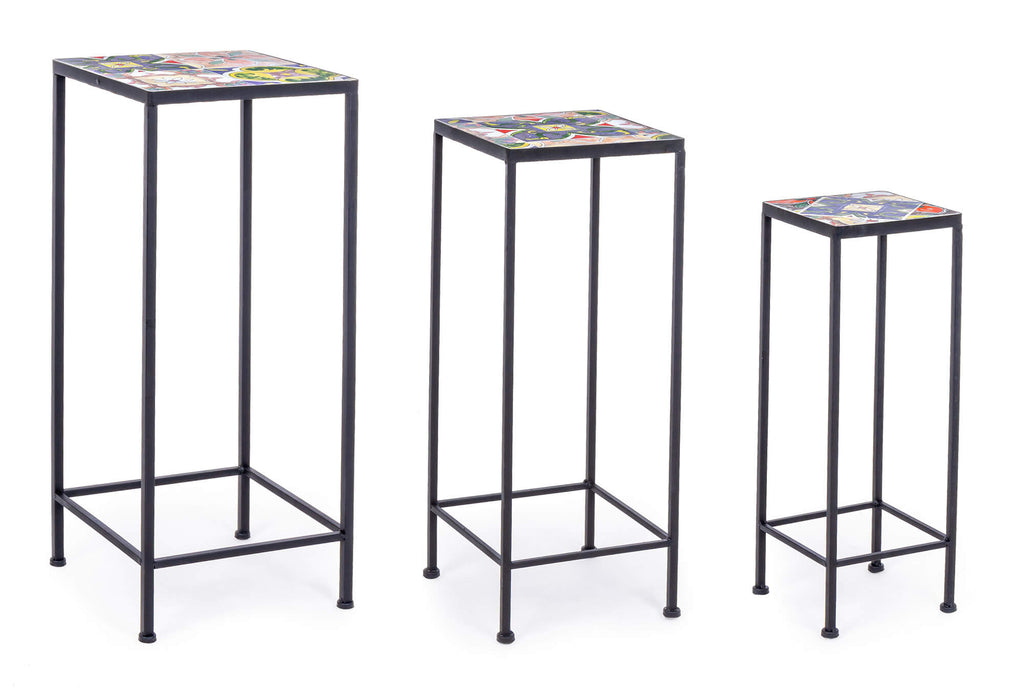 Set 6 Tavolini da Giardino in Acciaio con Piano in Ceramica a Mosaico Paloma Nero