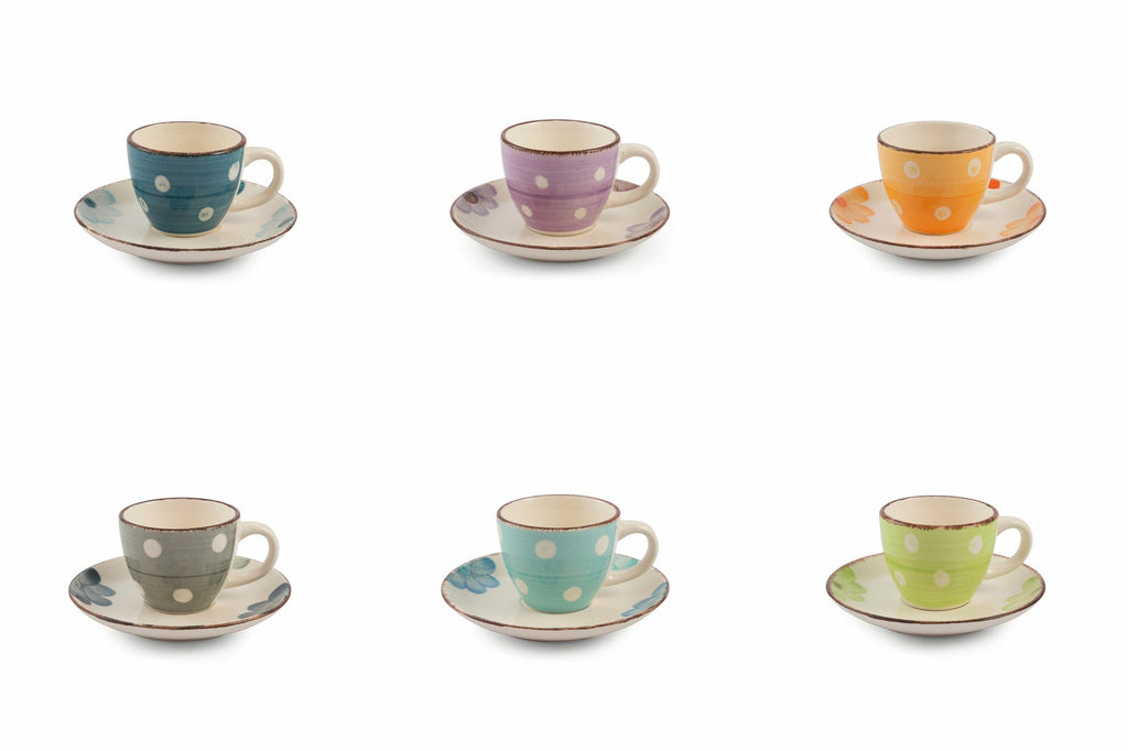 Set 6 Tazzine Caffè con Piattino in Gres 50 ml Villa d'Este Home Tivoli Margarita