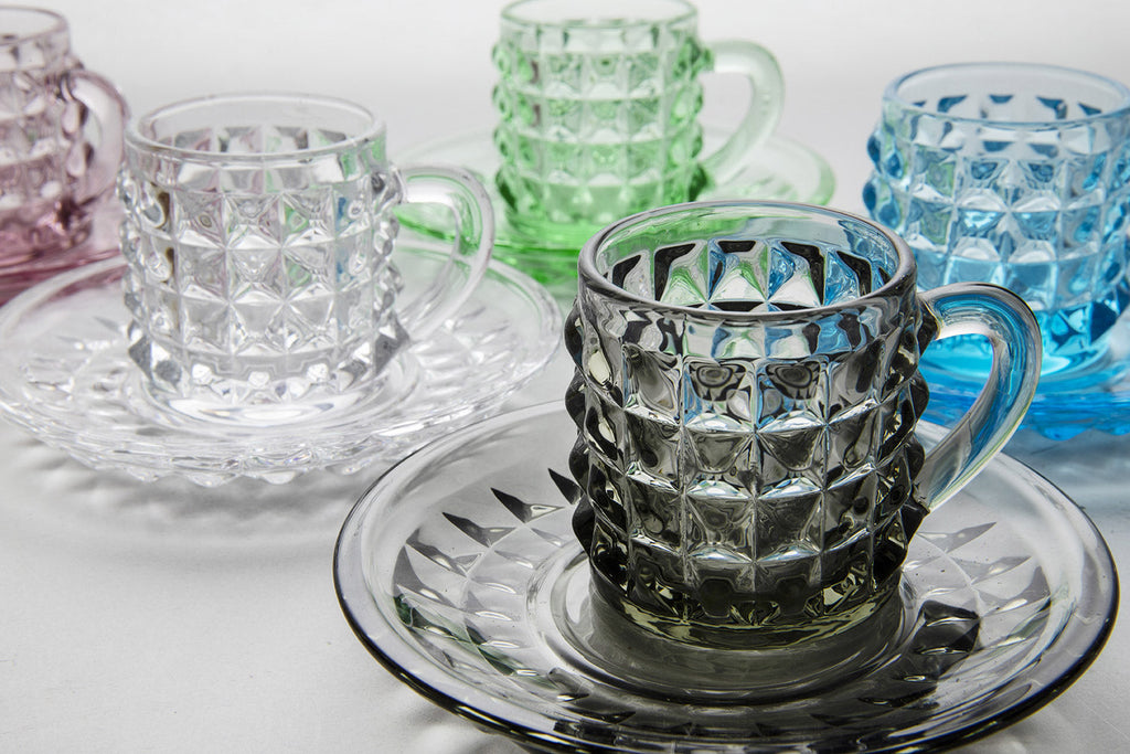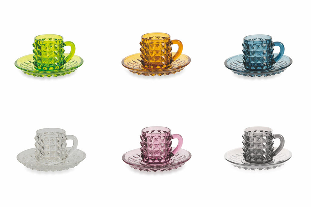 Set 6 Tazzine Caffè in Vetro Colorato con Piattino 90 ml VdE Tivoli 1996 1996 Diamond