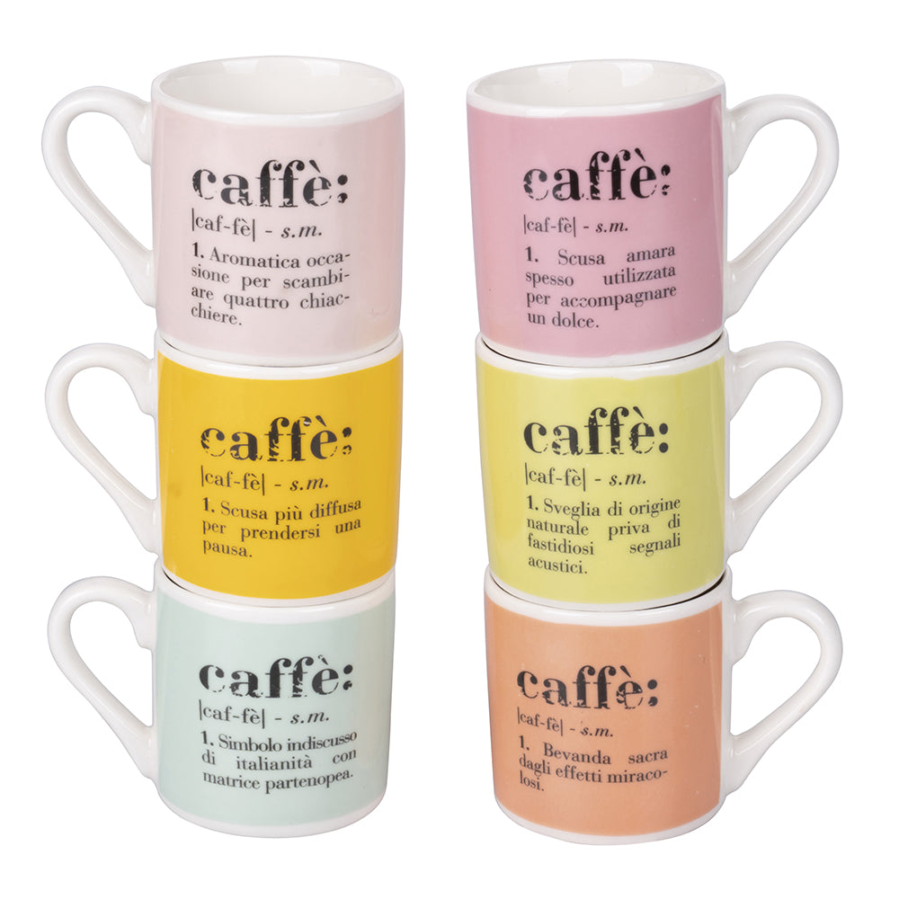 Set 6 tazzine Caffè Ø5,5x5,5 cm in New Bone China VdE Tivoli 1996 Victionary Colours