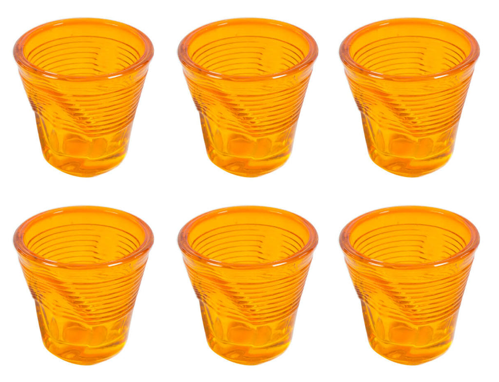 Set 6 Tazzine da Caffè Accartocciati Ø6,5 cm in Vetro Pressato Kaleidos Arancioni