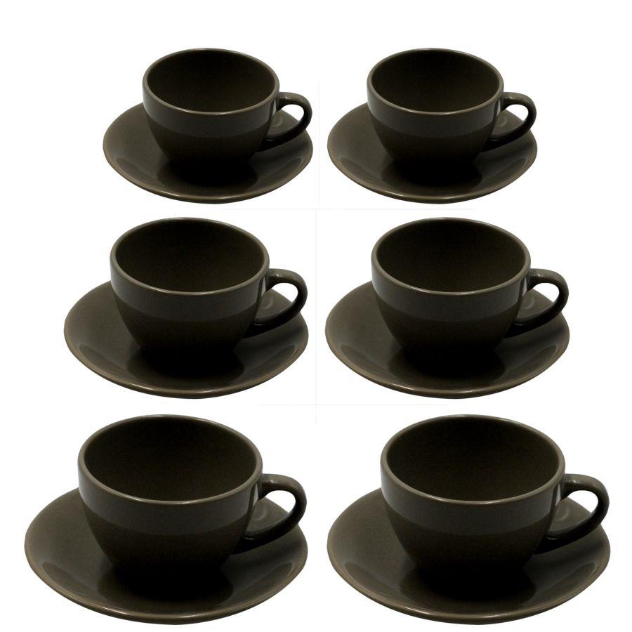Set 6 Tazzine da Caffè con Piattino 8x7xh5 cm in Gres Porcellanato Romeo Tortora