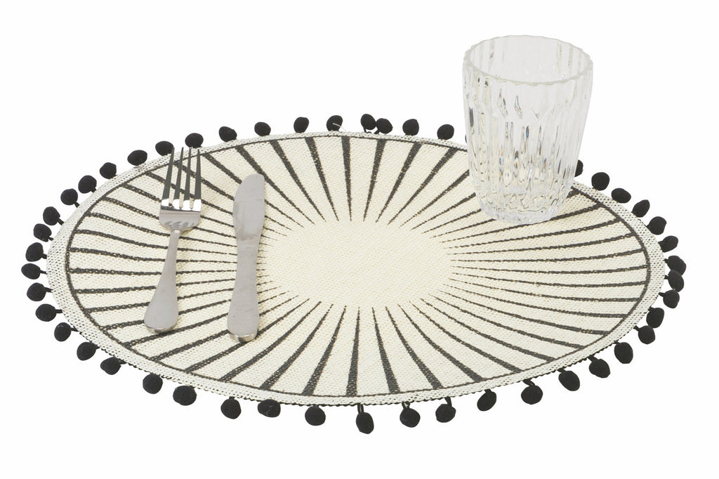 Set 6 Tovagliette in Juta con Pon Pon Ø38 cm Villa d'Este Home Tivoli Black
