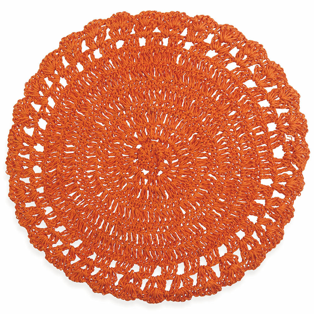 Set 6 Tovagliette Tonde in Rafia Villa d'Este Uncinetto Arancio