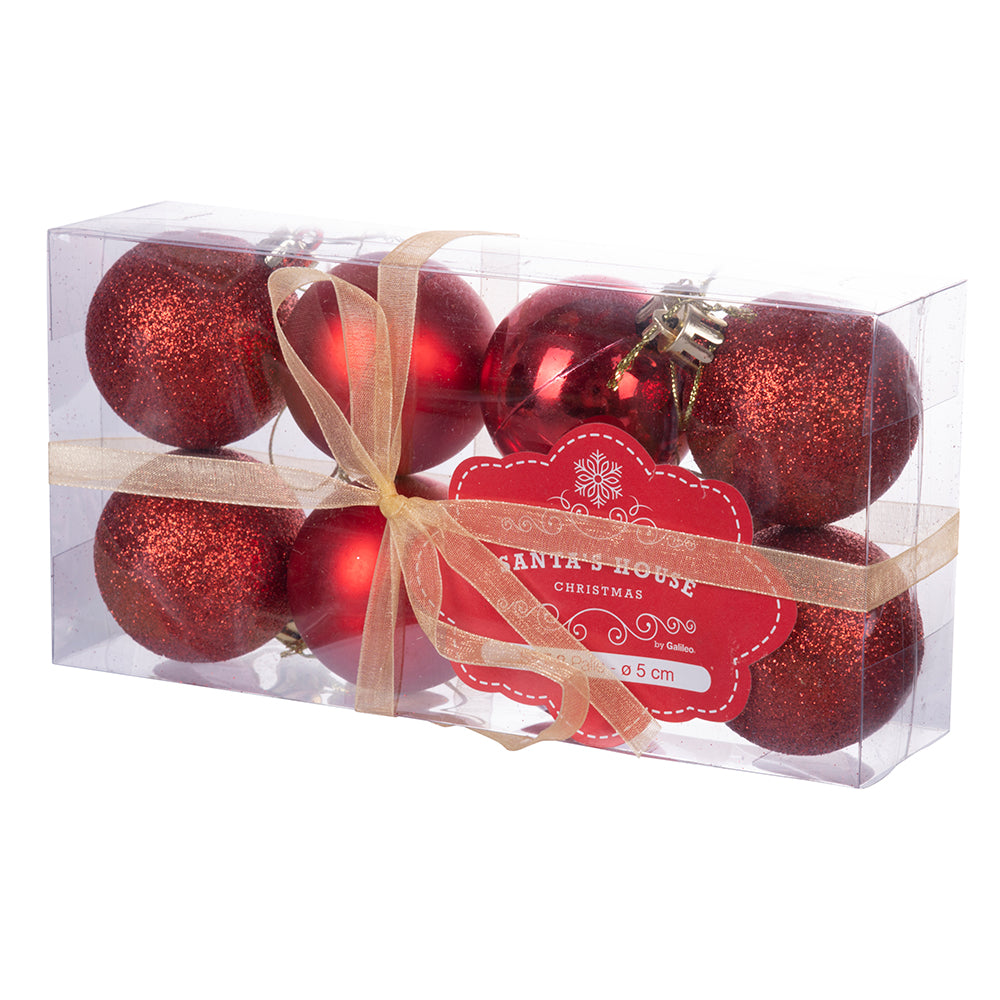 - Confezione assortita con palle rosso lucido, satinato, glitterato