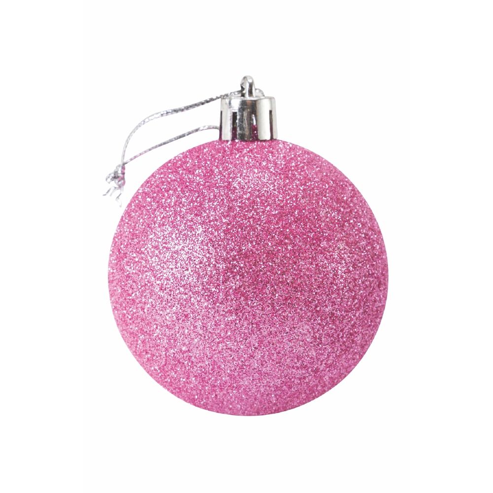 - Confezione assortita con palle rosa lucide, decorate, glitterate