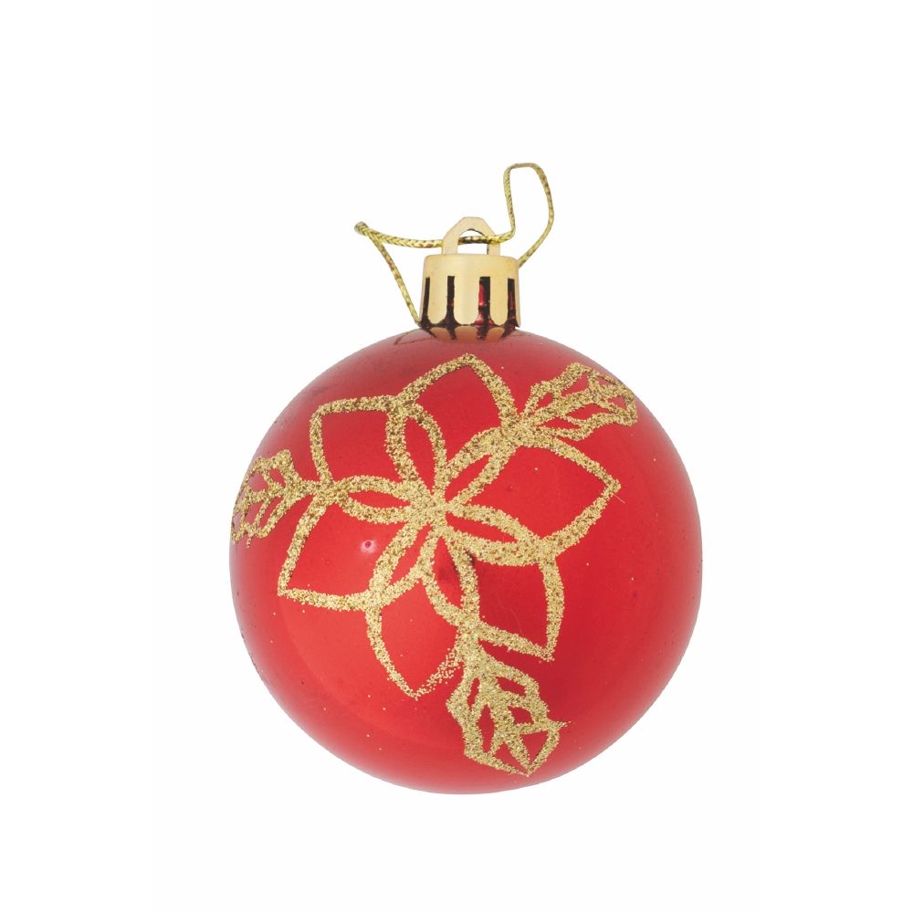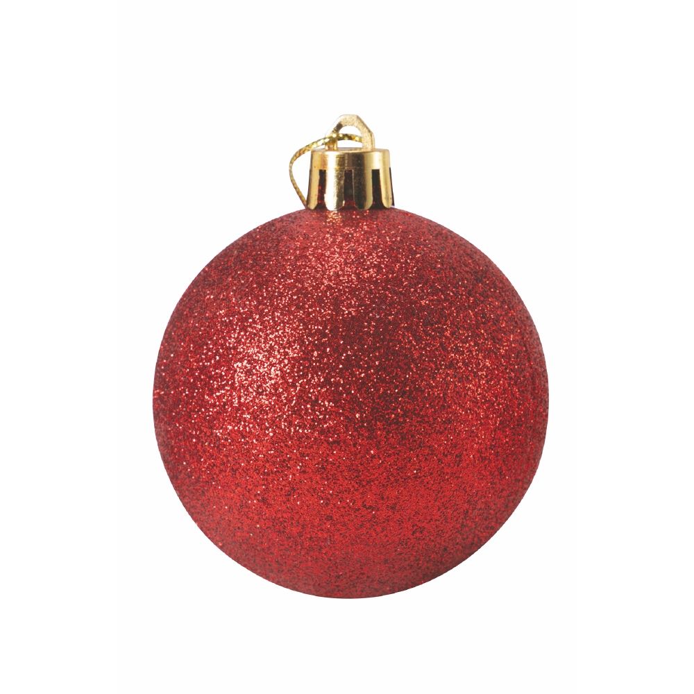 - Confezione assortita con palle rosse lucide, decorate, glitterate
