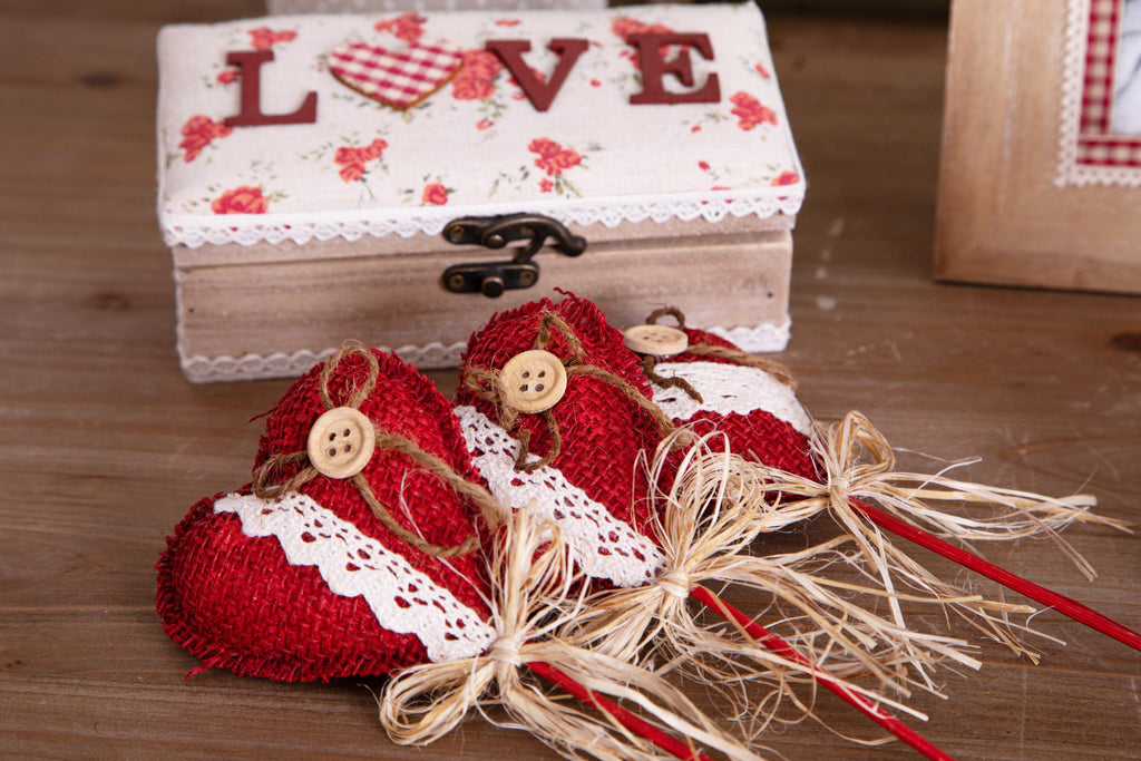 Set 9 Rami in Legno Cuori Trina H 10 cm