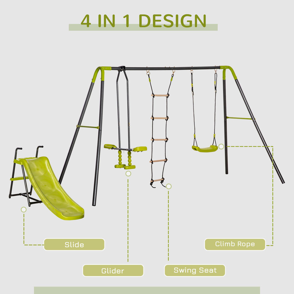 - PLAYSET COMPLETO: Questo set include un'altalena singola, un'altalena doppia, una corda da arrampicata e uno scivolo. Può far giocare fino a 5 bambini contemporaneamente.