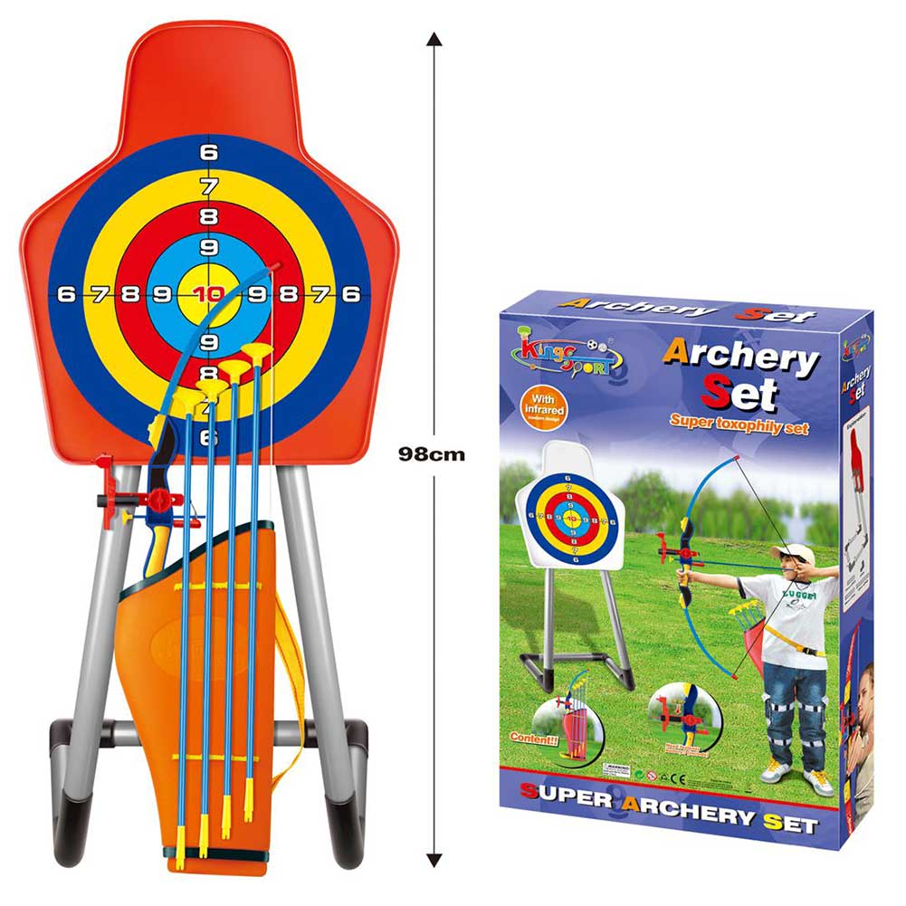 Allena la tua mira e diventa un vero arciere con questo magnifico set composto da arco frecce e bersaglio!