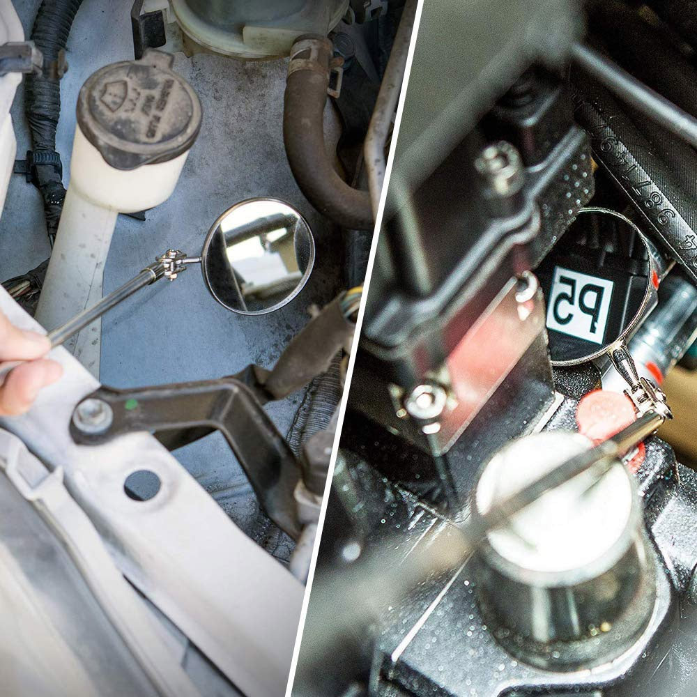 Lo specchietto telescopico invece è perfetto per poter guardare anche in piccoli spazzi difficili da poter osservare come dietro motori, mobili ecc.. e può raggiungere una lunghezza massima di 48 cm.