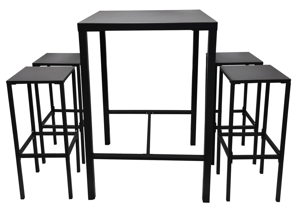 Set Bar Tavolo Alto e 4 Sgabelli da Giardino in Metallo Utility Snack Nero