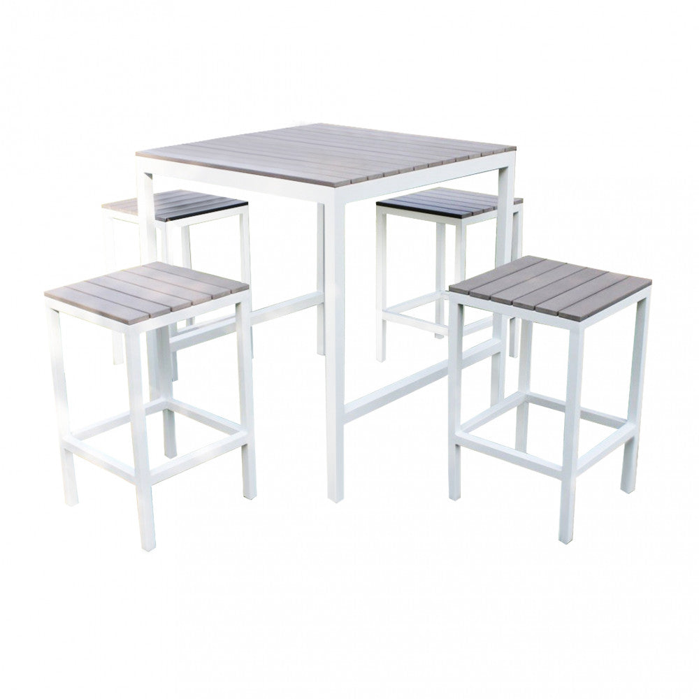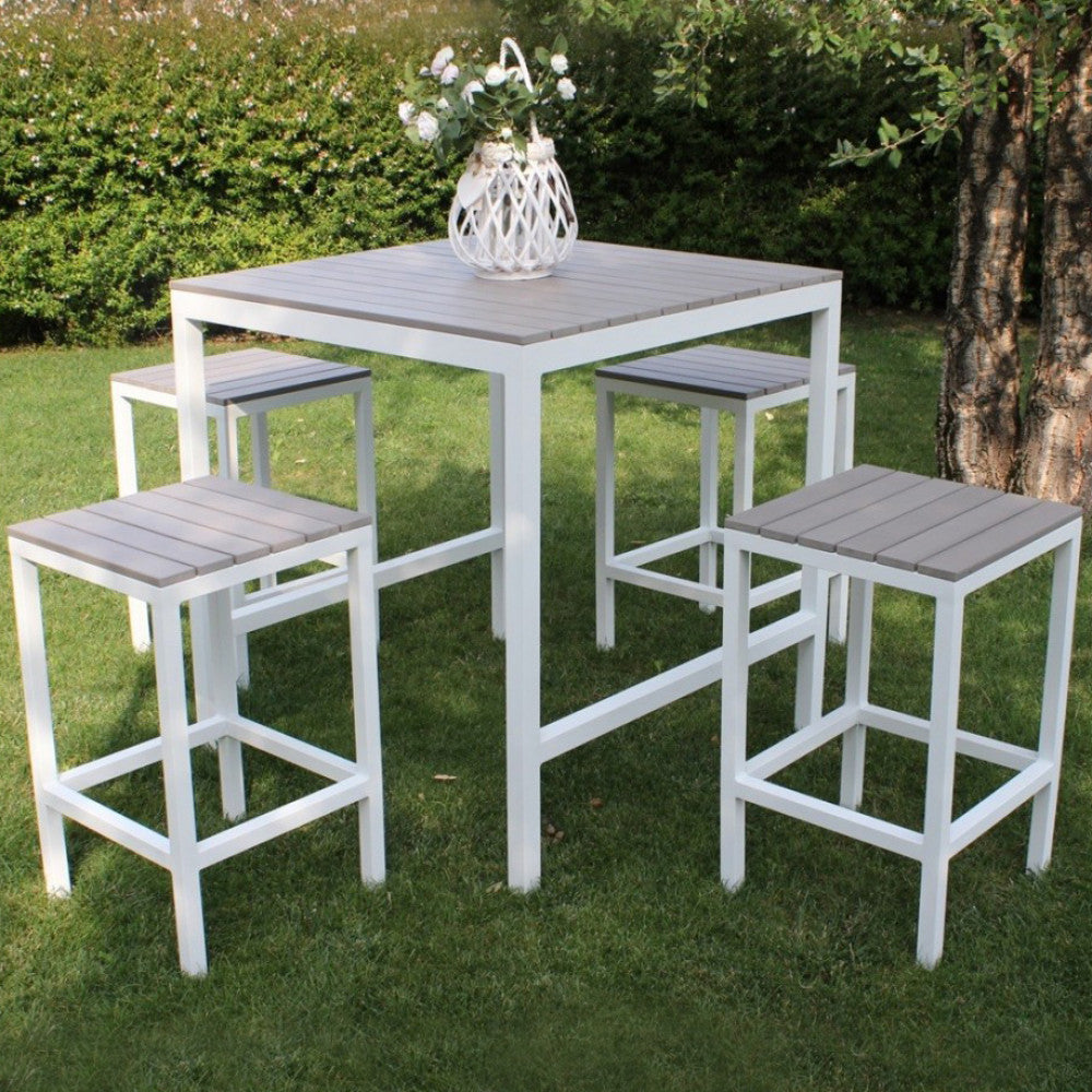 Set Bar Tavolo e 4 Sgabelli Sirio in Alluminio Bianco