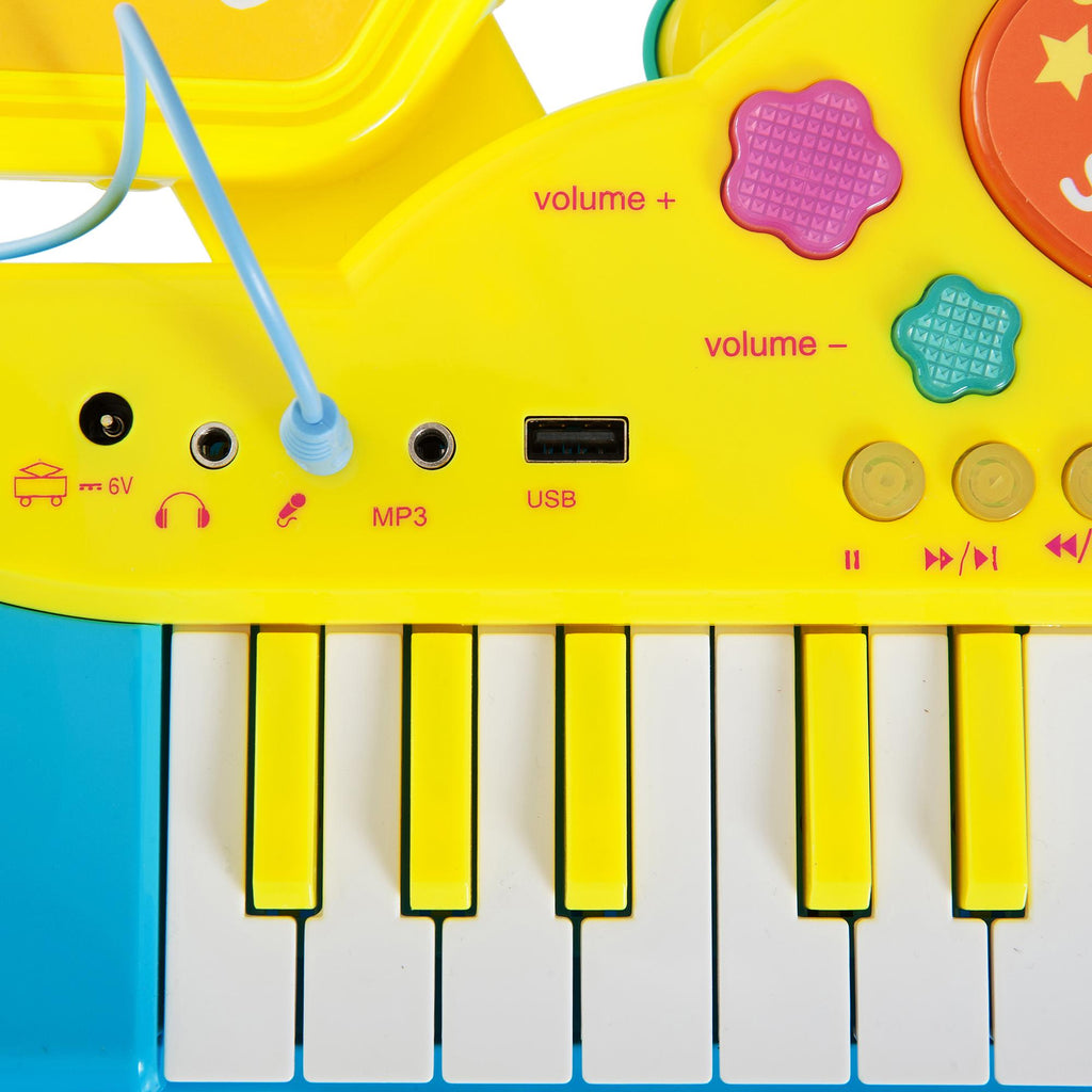 Set Batteria e Pianoforte Giocattolo per Bambini Blu e Giallo