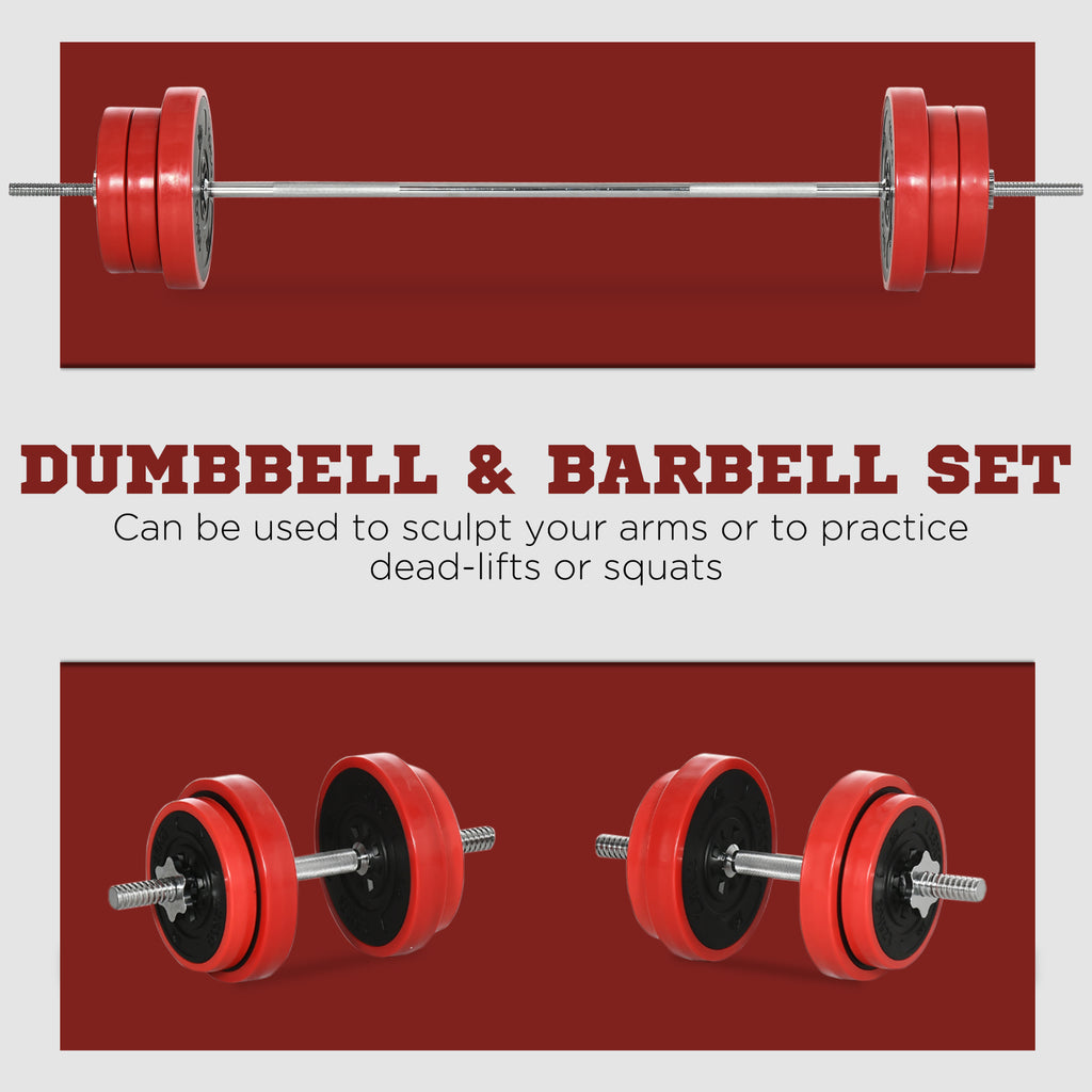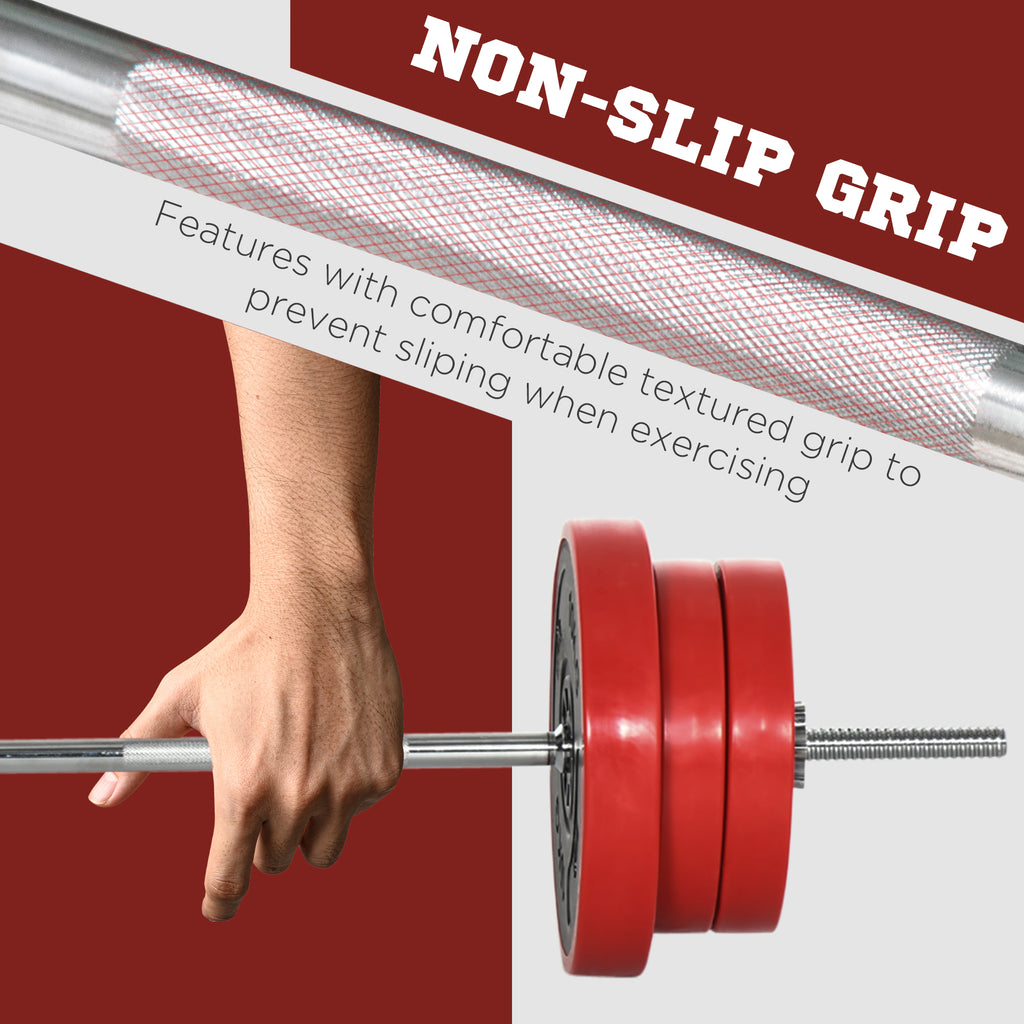 Set Bilanciere e Dischi 65 kg Totali in Metallo e Sabbia di Ferro e Gomma Rosso