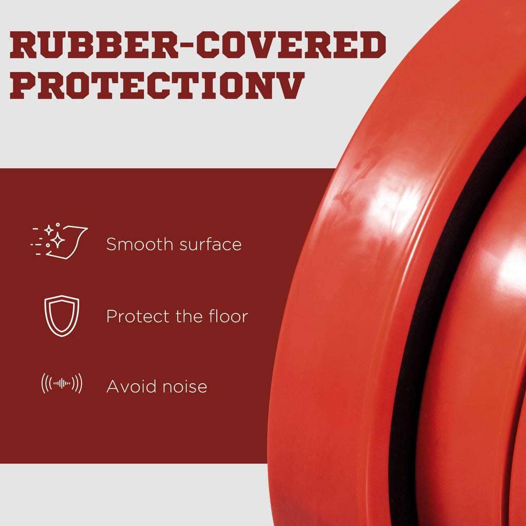 - RIVESTIMENTO IN GOMMA: I dischi sono tutte avvolti da uno strato di gomma per proteggere completamente loro stessi e il terreno, evitando rumori fastidiosi e permettendoti di allenarti in silenzio
