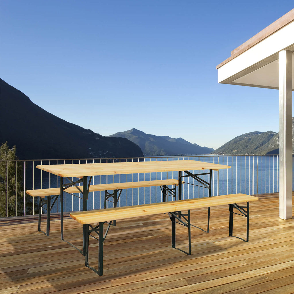 Set Birreria da Giardino Pieghevole Tavolo 200x70 cm in Legno di Abete