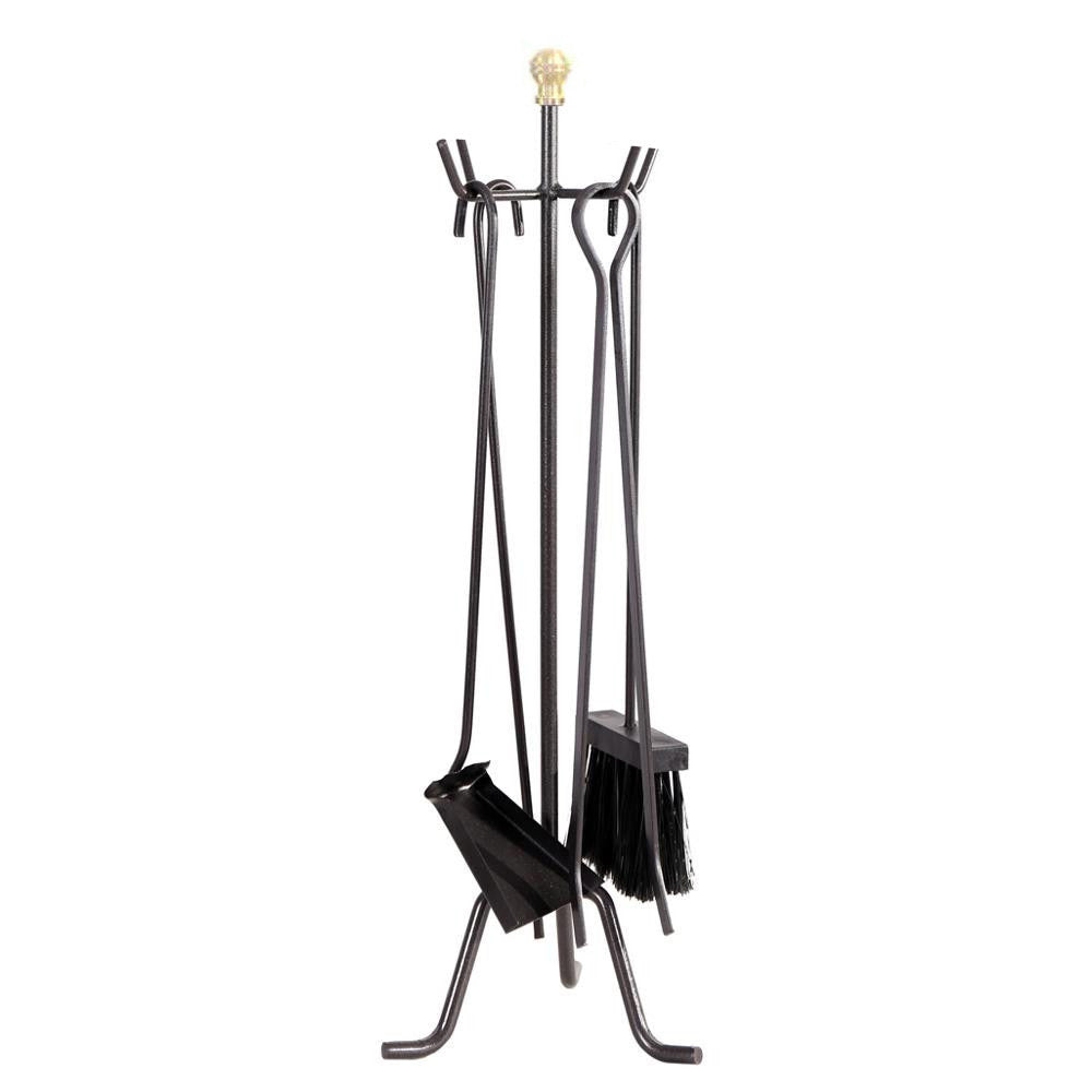 Set Camino 4 Pezzi 22x58 cm Scopino Paletta Attizzatoio e Pinza Ferro Battuto