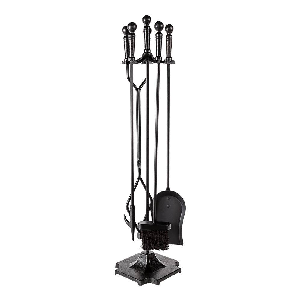 Set Camino 4 Pezzi 78x17 cm Scopino Paletta Attizzatoio e Pinza con Supporto Moon Black Nero