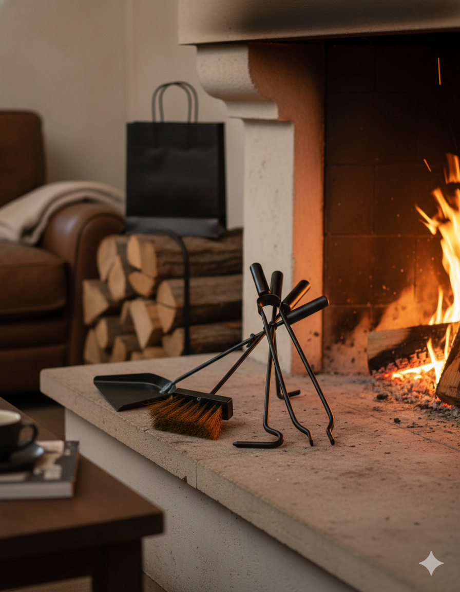 • 4 elementi: paletta, scopino in ottone, attizzino, pinza