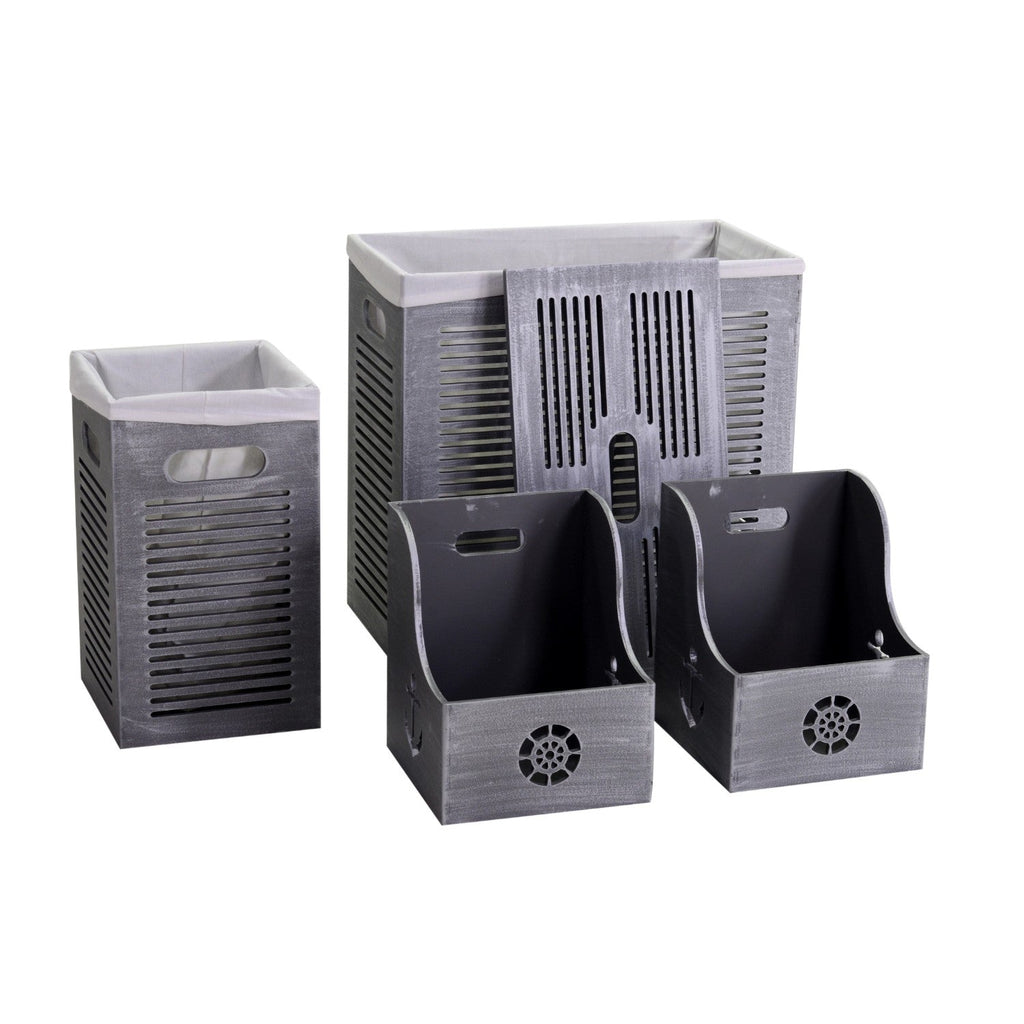 Set Cesta e 2 Portatutto in Legno 56x30H56cm Rachele Grigio