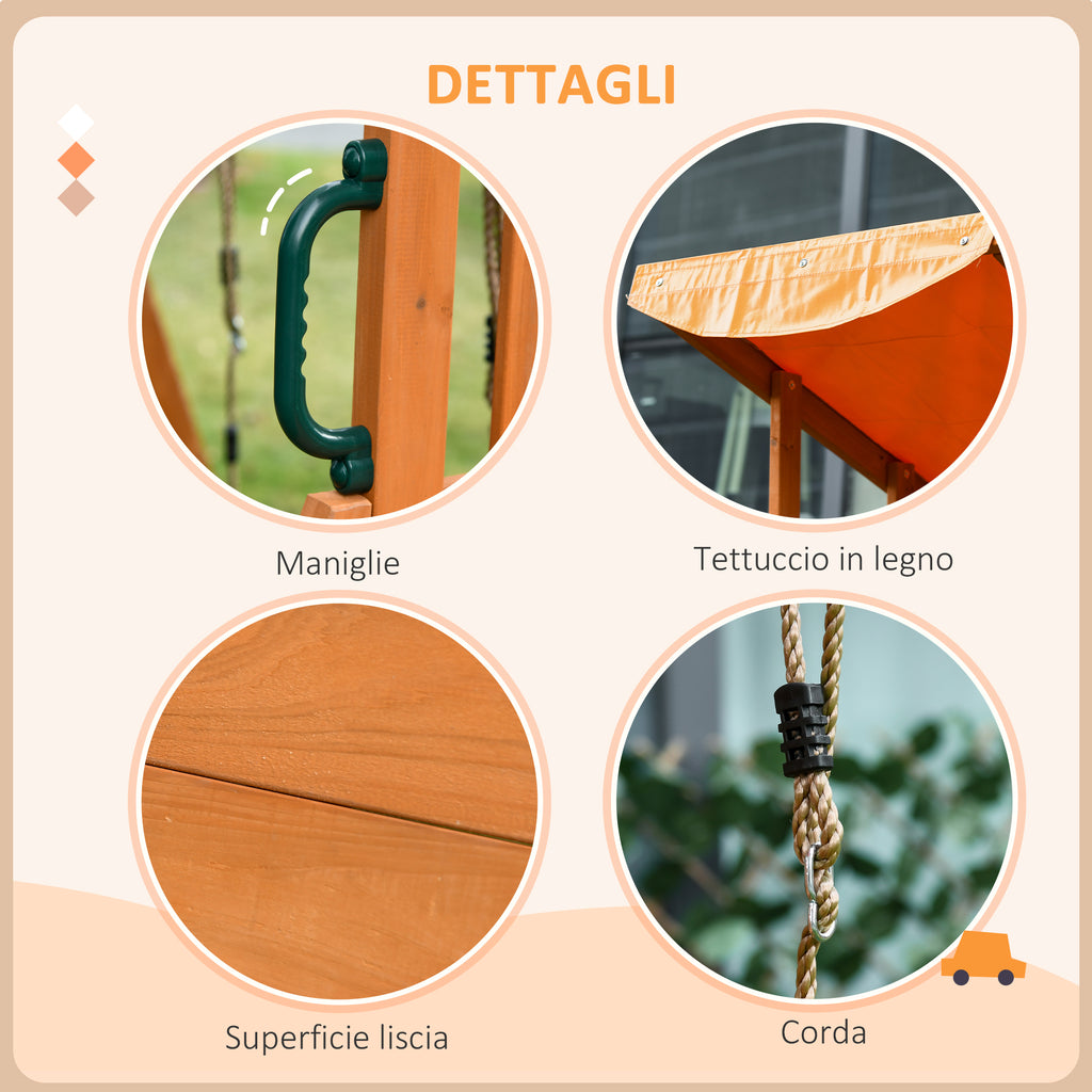 - SICURO E STABILE: Realizzato in solido legno, il set con altalene e scivolo da giardino è progettato per durare a lungo e rimanere stabile, per garantire massima sicurezza quando i bambini giocano. Lo scivolo è dotato di estensione finale per evitare che i bimbi cadano a fine corsa, mentre le corde delle altalene sono regolabili per adattarle all'età dei bambini