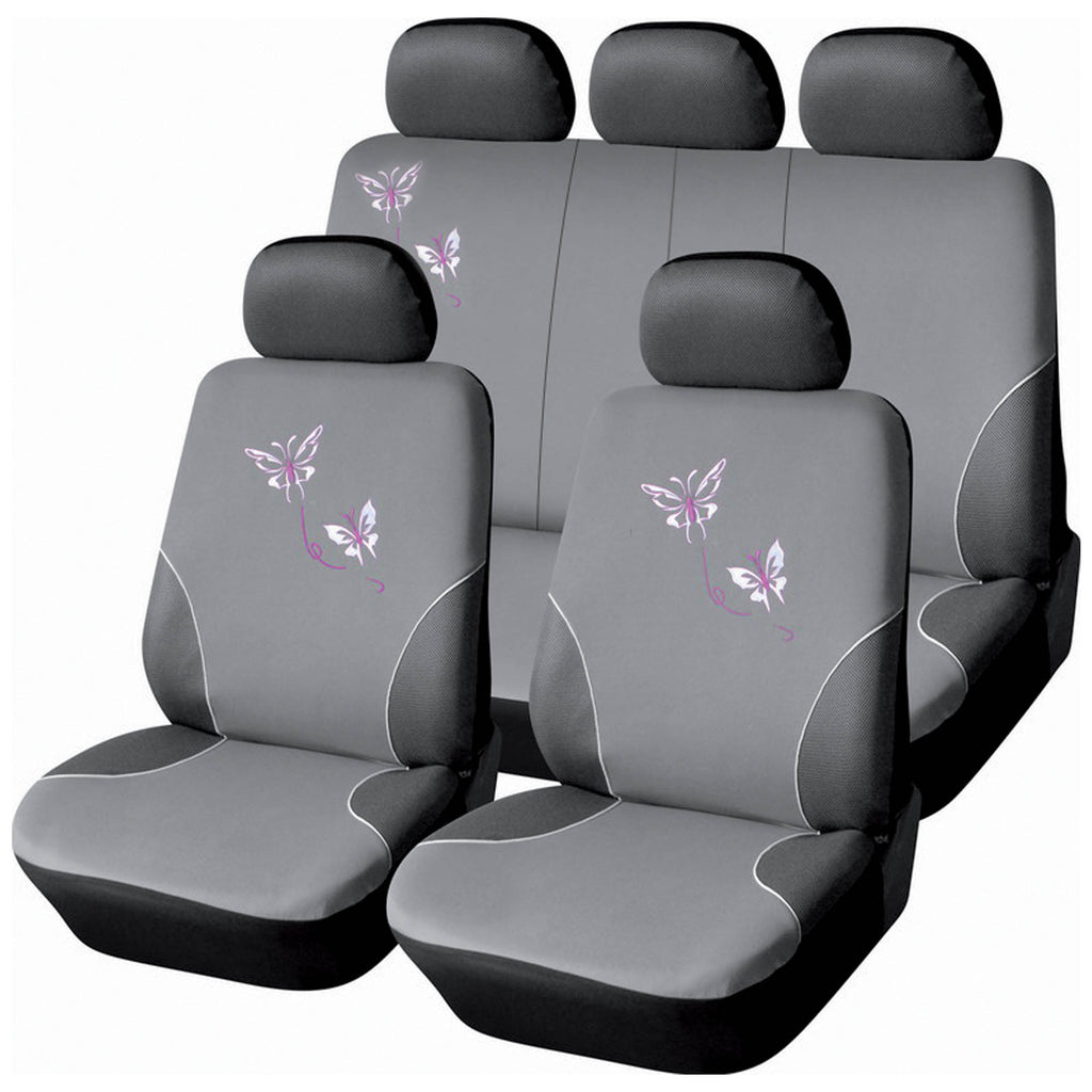 Set Coprisedili Anteriori e Posteriori Universali in Poliestere e Spugna Butterfly Grigi