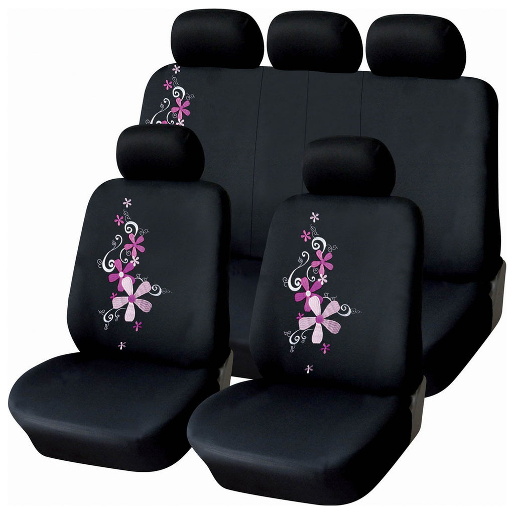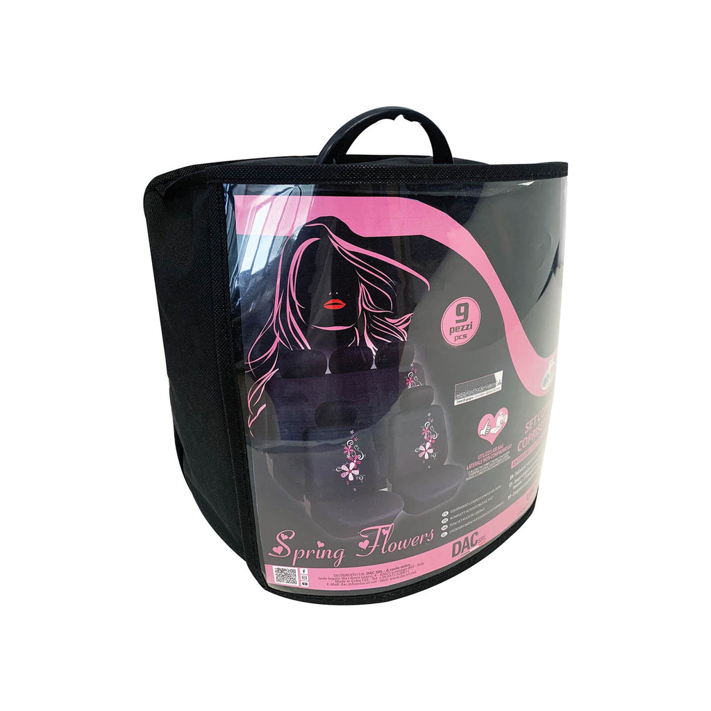 - Il kit comprende 9 pezzi: due coprisedili anteriori, la seduta dei sedili posteriori e lo schienale, e i cinque copri poggiatesta