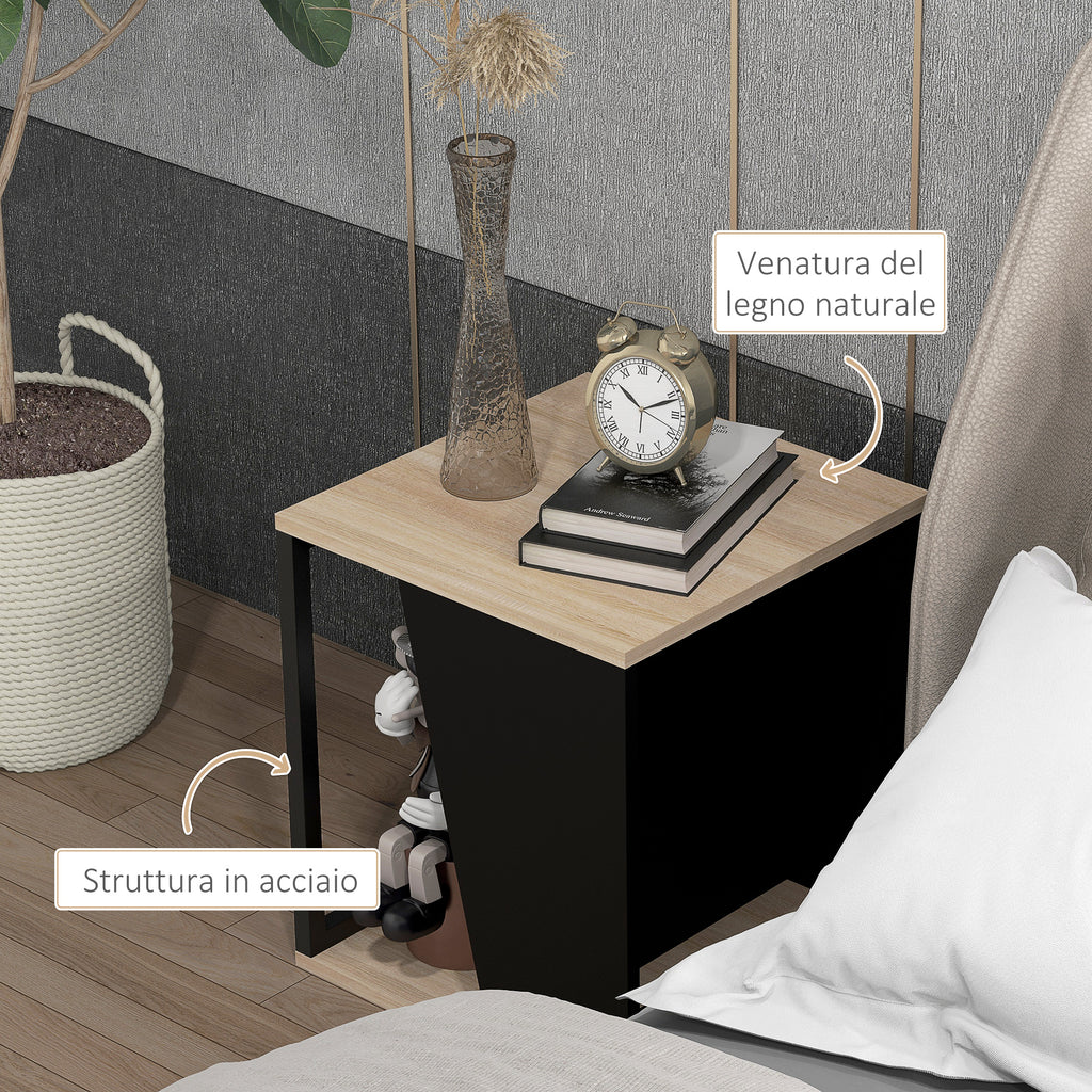 Set da 2 Tavolini da Caffè 40x40x45 cm con Vano Porta Oggetti in Truciolato e Acciaio Nero e Quercia