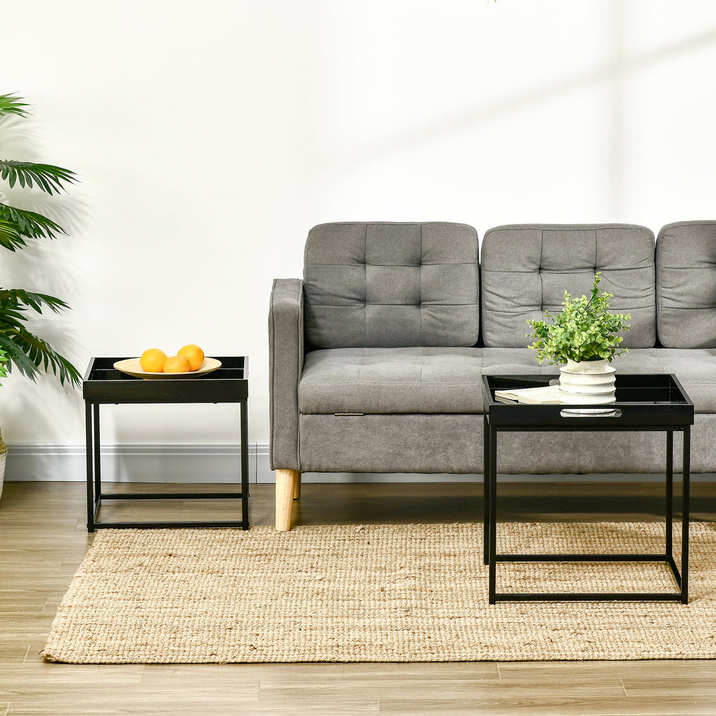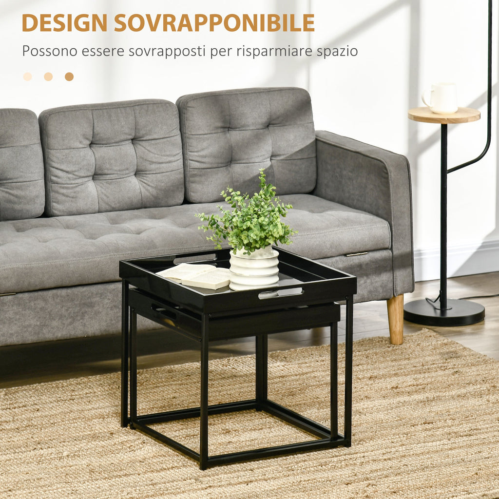 Set da 2 Tavolini da Caffè Impilabili con Finitura Lucida e Telaio in Acciaio Nero