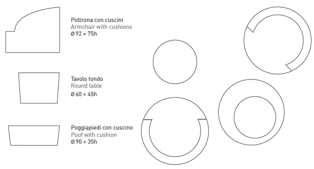 - Dimensioni Poltrona (ØxA): 92 x 75 cm