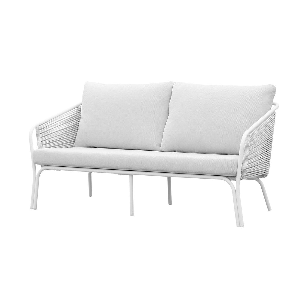 Immagina il Set da Giardino Nora, un ensemble elegante e confortevole. Le due poltrone e il divano a due posti presentano rivestimenti in corde di poliestere bianco Ø mm 9, mentre i cuscini schienali e sedute, rivestiti in tessuto Olefina bianco, offrono un tocco di morbidezza e resistenza. Il tavolino, con piano in pietra sintetica bianca, poggia su una struttura portante in alluminio verniciato a polvere bianco. Un set che unisce estetica e comfort per creare un'oasi di relax all'aperto senza compromessi.