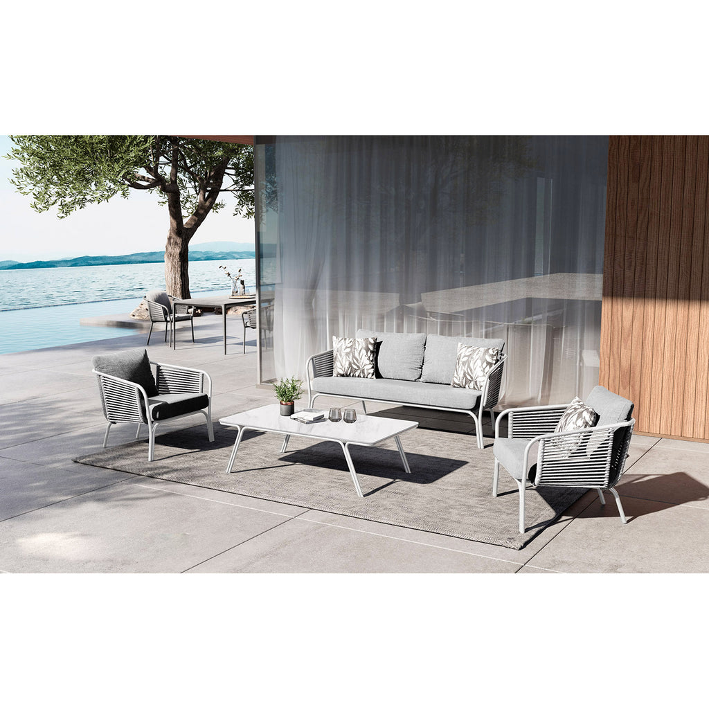 Set da Giardino 2 Poltrone un Divano e Tavolino Nora in Alluminio