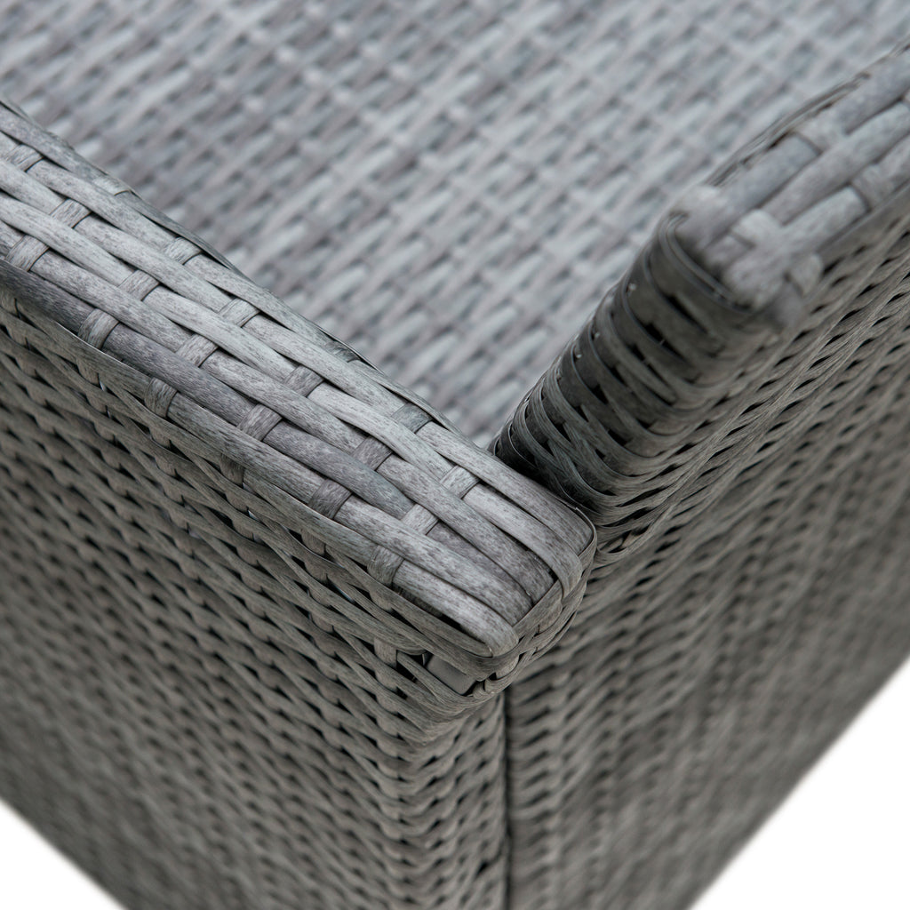 Vuoi cambiare il look del tuo terrazzo? Questo salotto da esterni è perfetto per rilassarsi all'aperto insieme alla propria famiglia! Il set è composto da 4 pezzi: 2 poltrone, 1 divano a due posti e 1 tavolino coordinato. La struttura dei mobili è composta da un telaio in tubi di acciaio galvanizzato rivestito con rattan sintetico. Due materiali resistenti, impermeabili, ideali per l'uso esterno e, ovviamente, eleganti. Perfetti per valorizzare il tuo arredamento outdoor!