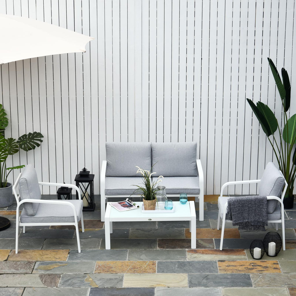 Set da Giardino Divano 2 Poltrone e Tavolino in Alluminio Bianco e Grigio