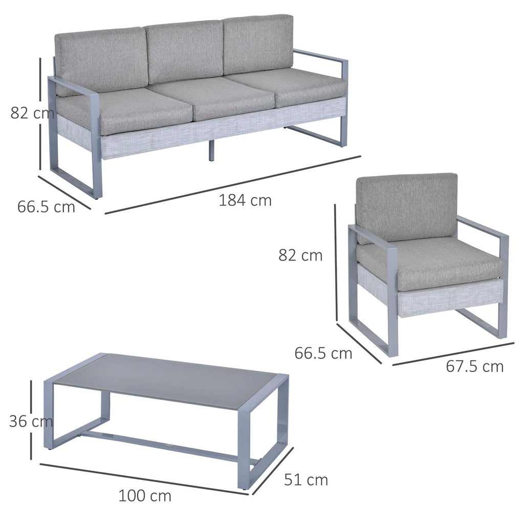 Set da Giardino Divano 2 Poltrone e Tavolino in Alluminio Grigio