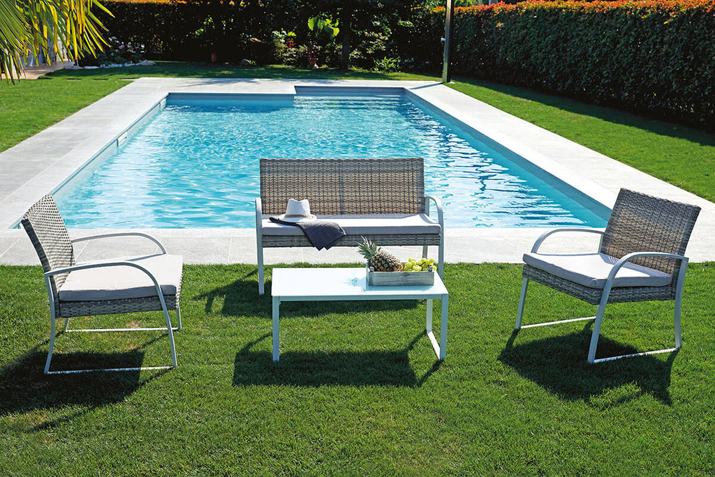 Set da Giardino Divano 2 Poltrone e Tavolino in Ferro Epoxy Vorghini Varenna