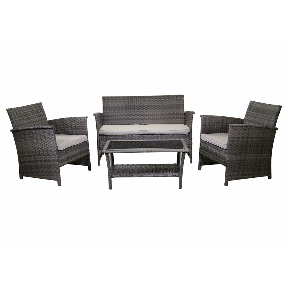 Set da Giardino Divano 2 Poltrone e Tavolino in Polyrattan Detroit Grigio