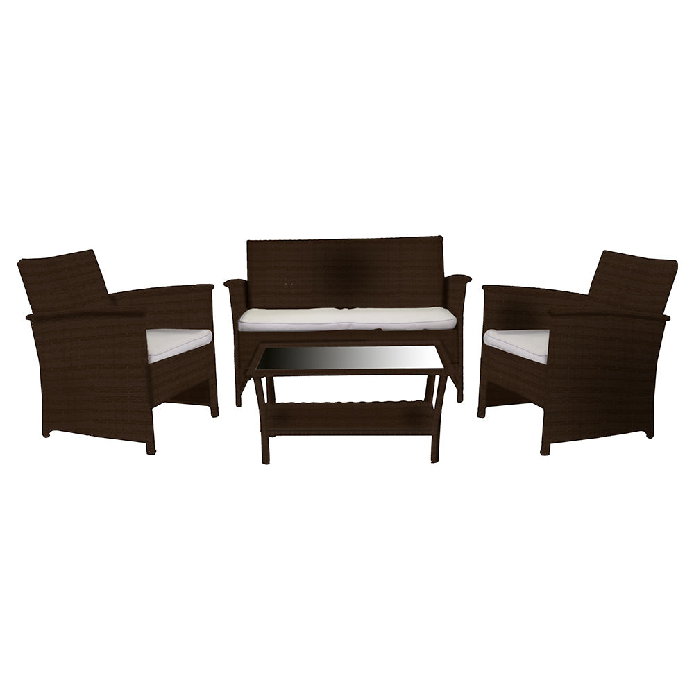 Set da Giardino Divano 2 Poltrone e Tavolino in Polyrattan Detroit Noce