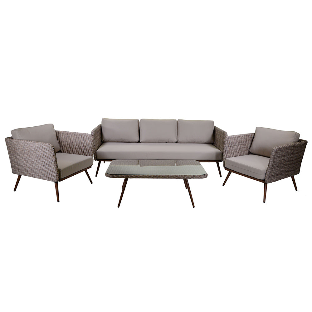 Set da Giardino Divano 2 Poltrone e Tavolino in Polyrattan Tirreno Naturale