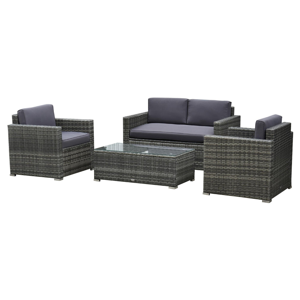 Set da Giardino Divano 2 Poltrone e Tavolino in Rattan Grigio
