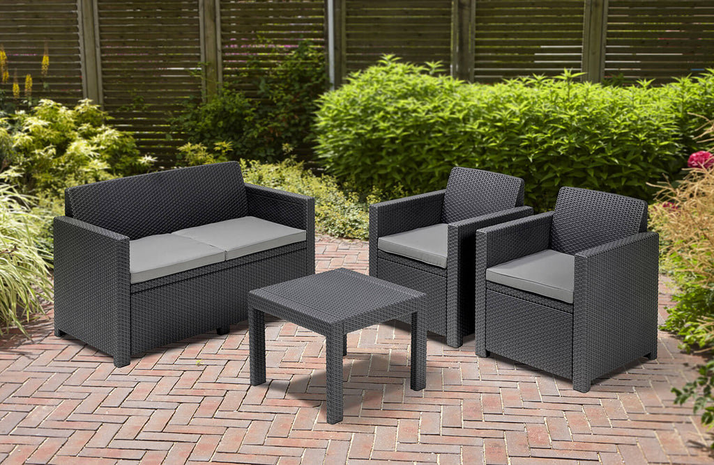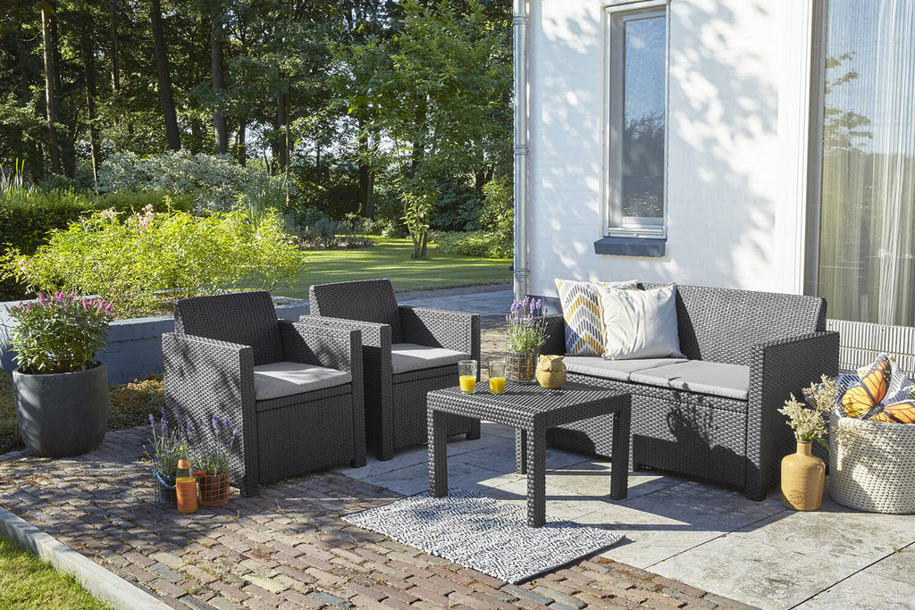Set da Giardino Divano 2 Poltrone e Tavolino in Resina Keter Alabama Lounge Antracite