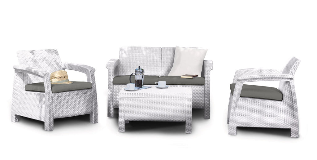 Set da Giardino Divano 2 Poltrone e Tavolino in Resina Keter Corfu Lounge Bianco