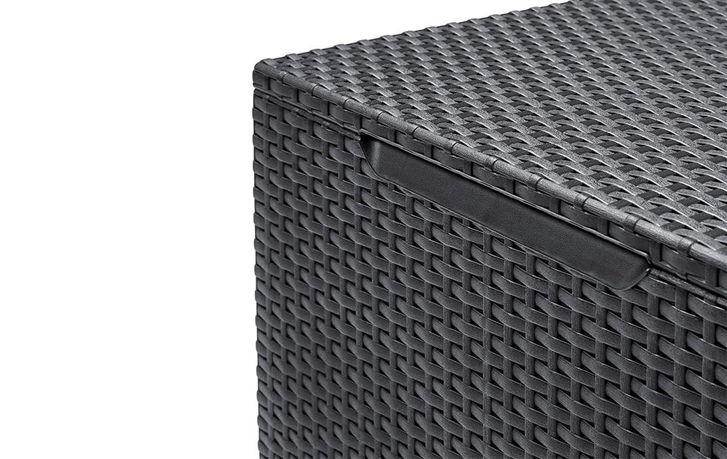 - Realizzato con materiale resistente e durevole, che richiama la finitura intrecciata del Rattan