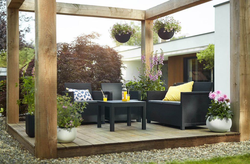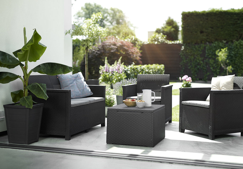 Set da Giardino Divano 2 Poltrone e Tavolino in Resina Keter Emma Lounge Antracite