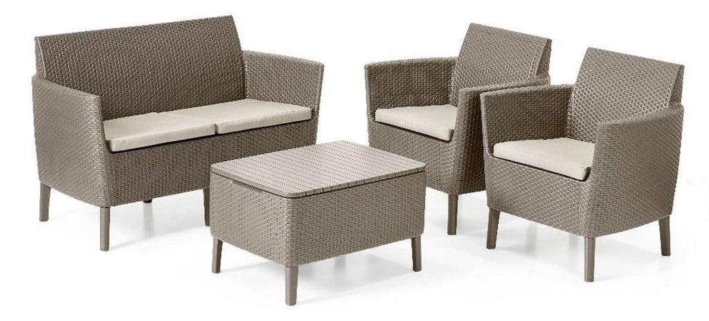 Set da Giardino Divano 2 Poltrone e Tavolino in Resina Keter Salemo Lounge Cappuccino